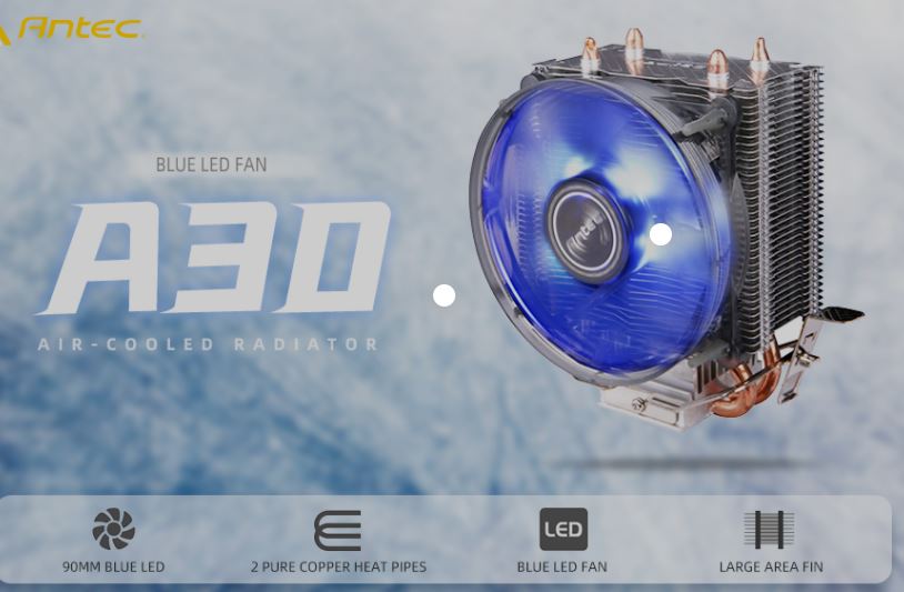 Antec A30 K 92mm Blue LED 36CFM, 2x Copper Heatpipe.