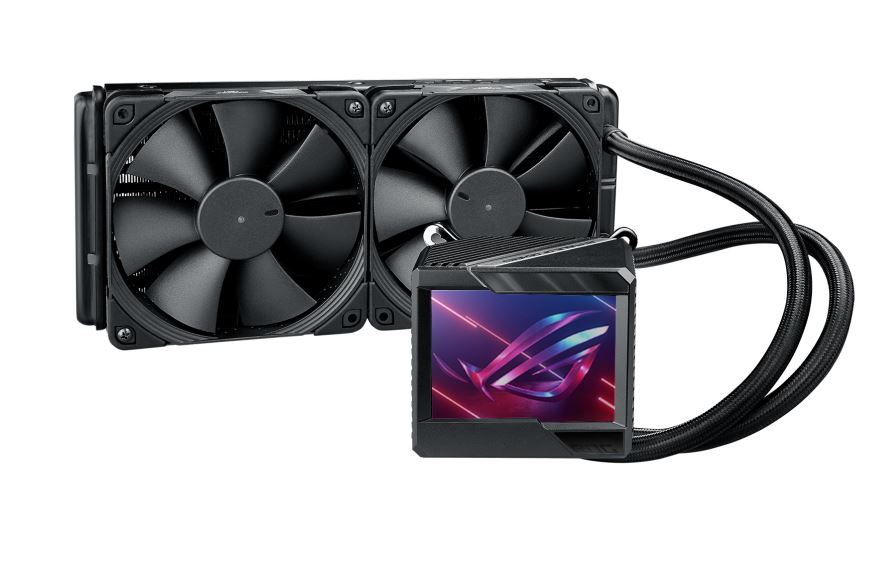 ASUS ROG Ryujin II 240 all-in-one liquid CPU cooler with 3.5″ LCD, embedded pump fan and 2x Noctua iPPC 2000 PWM 120mm radiator fans