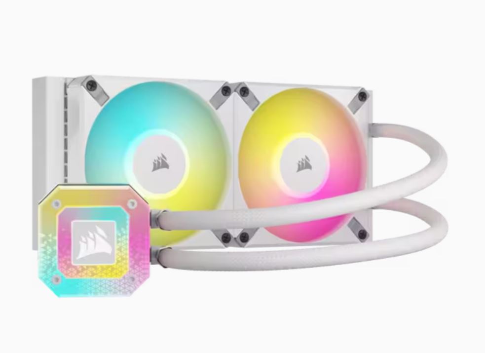 The CORSAIR iCUE H100i ELITE CAPELLIX XT Liquid CPU Cooler delivers powerful, low-noise cooling for your CPU, with a 240mm radiator and two CORSAIR ML120 RGB Magnetic Levitation PWM fans controllable between 400 RPM and 2,400 RPM. 33 Ultra-bright CAPELLIX LEDs on the pump head and eight RGB LEDs per fan put the spotlight on your cooling