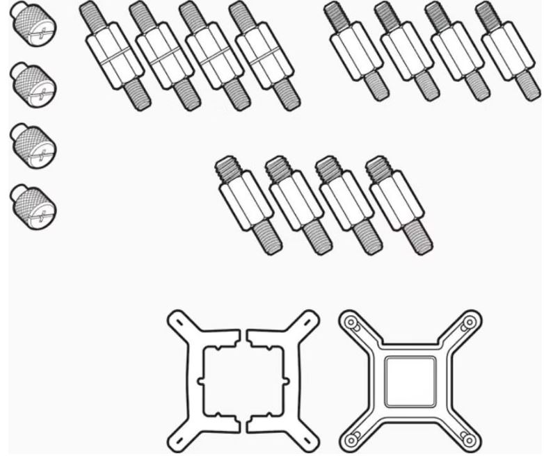 This replacement retention kit includes the brackets, standoffs, and thumbnuts required to mount an RGB ELITE Series, ELITE Capellix, or LCD Series AIO cooler to Intel 1700, 1200, 1150, 1151, 1155, 1156, 1366, 2011, and 2066 sockets.