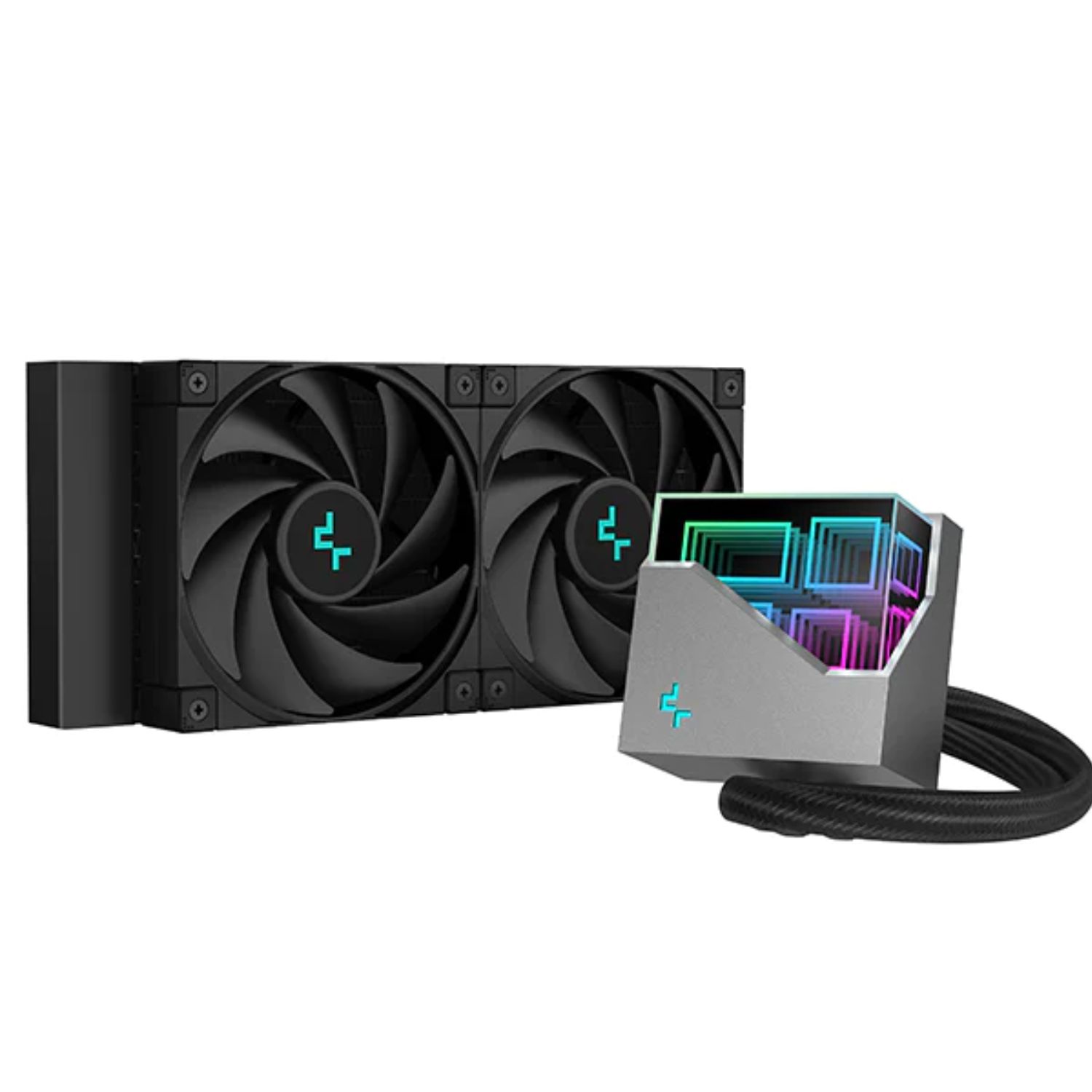 The DeepCool LT520 high-performance liquid CPU cooler provides strong heat dissipation power with a 240mm radiator, two precision-tuned FK120 fans, and a multidimensional infinity mirror top cap.