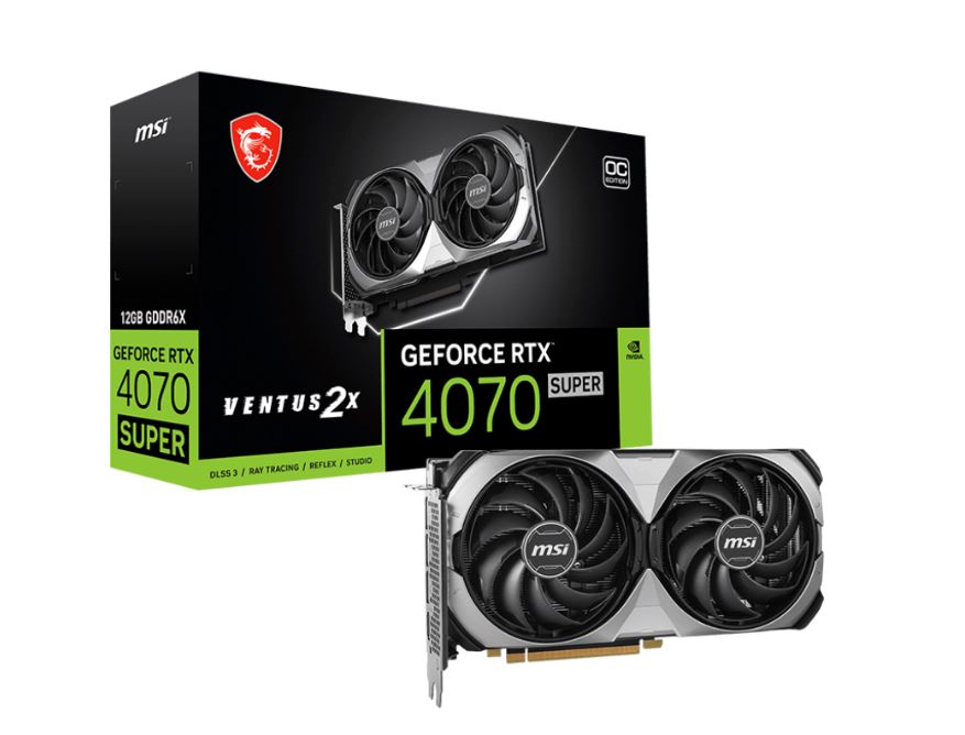 MSI GeForce RTX 4070 SUPER 12G VENTUS 2X OC Video Card 2505 MHz Boost Clock, 12GB GDDR6X,DisplayPort x 3 (v1.4a),HDMI x 1
